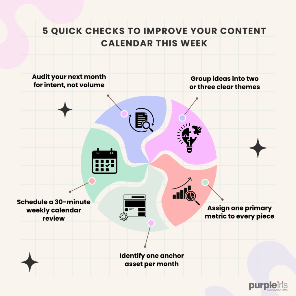 • A content calendar is most effective when it reflects deliberate choices, not just publishing commitments