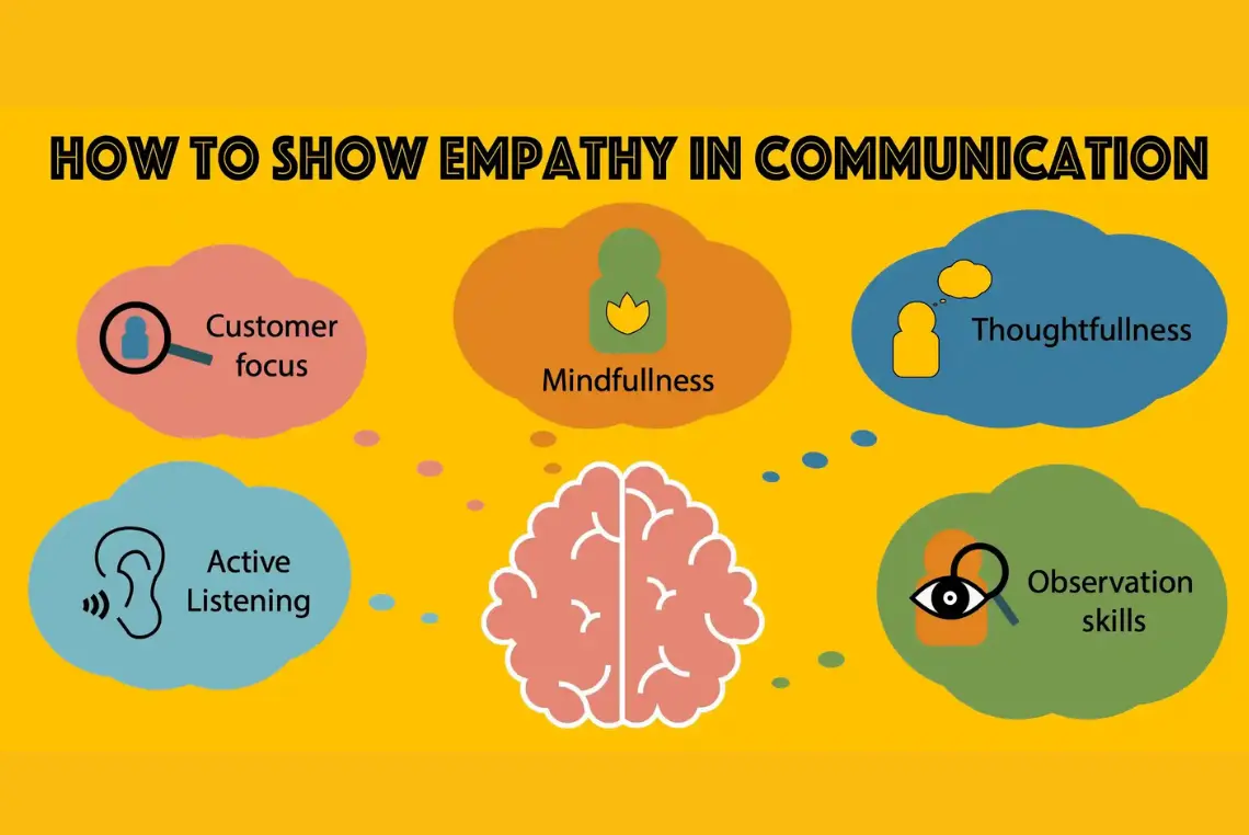 Listening with understanding and mindfulness: Listening is one of the most underestimated and underutilized skills in communication. Do you listen to understand or listen to reply? If it’s the latter, it means you are ready with a response even before the speaker has finished. In order to develop empathy in communication and understand others, practice active listening. Be mindful of the circumstances, be present in the moment, and listen to understand. That way, you will observe better and provide the right response.